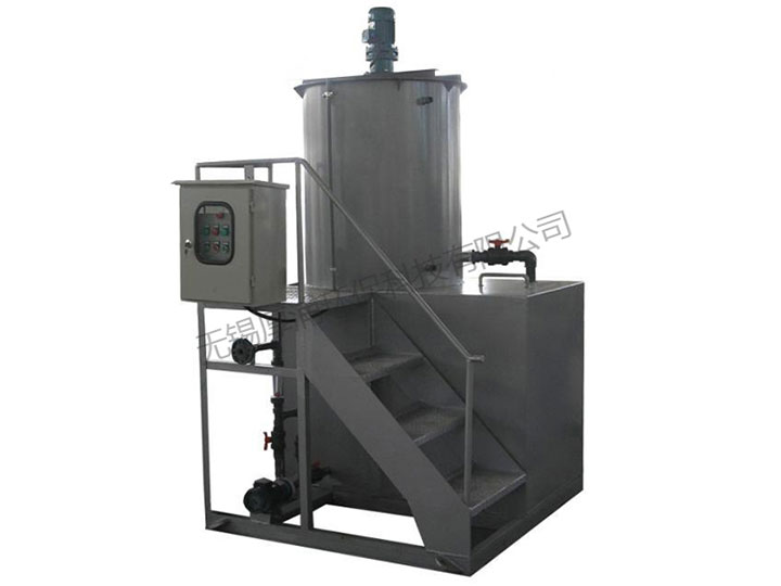 1、搅拌装置:由搅拌桶和搅拌器组成,其作用是使投加的溶质与水按一定比例配置后充分混合。